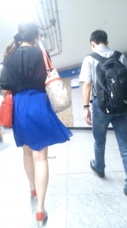 《大神魔手 极品CD 露毛丁字裤篇》蓝裙白窄内垂直角度